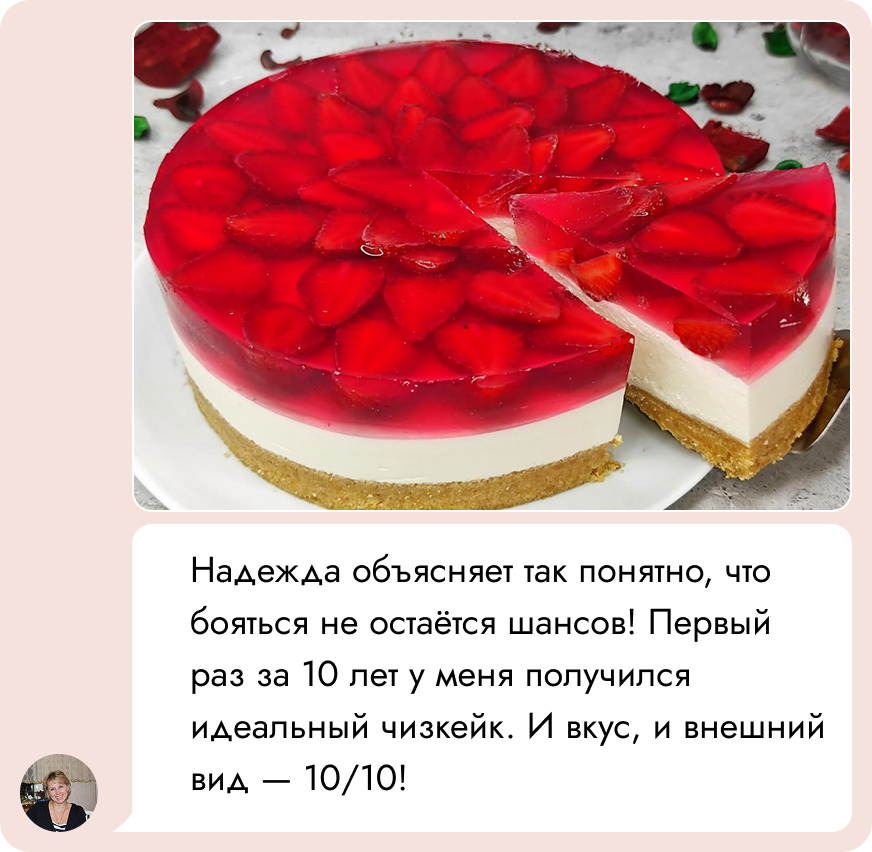 🔎 Но на марафоне мы разберём все ошибки и подводные камни. Результат — стабильный, яркий и вкусный чизкейк, как на фото!